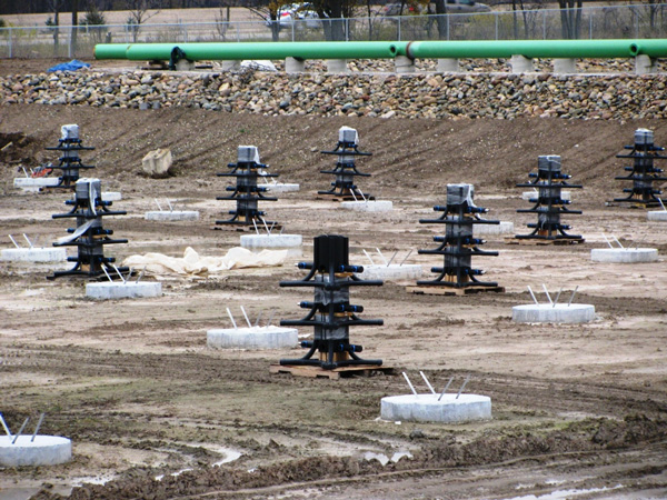 In addition to the highly efficient Triplepoint diffuser system, Coopersville will also be receiving Siemens Turbo Machinery, single stage centrifugal, premium efficiency, blower packages with a Dissolved Oxygen Control System. These 300 HP blower packages will be housed in acoustical enclosures and utilize dual point control to operate the blowers at their optimal efficiency based on “real time” oxygen demand. The capacity of the blower arrangement can be reduced up to 80% of the design capacity based on dissolved oxygen requirements. Aeration control is also based on the “most open valve” principle and header pressure monitoring to meet the oxygen demand while also maintaining optimum air flow dynamics throughout the aeration system. This innovative system will provide Coopersville the ability to handle variable flow and loading from their local Dairy Processor while keeping electrical and operating costs to a minimum. The system is expected to be commissioned in early 2012.